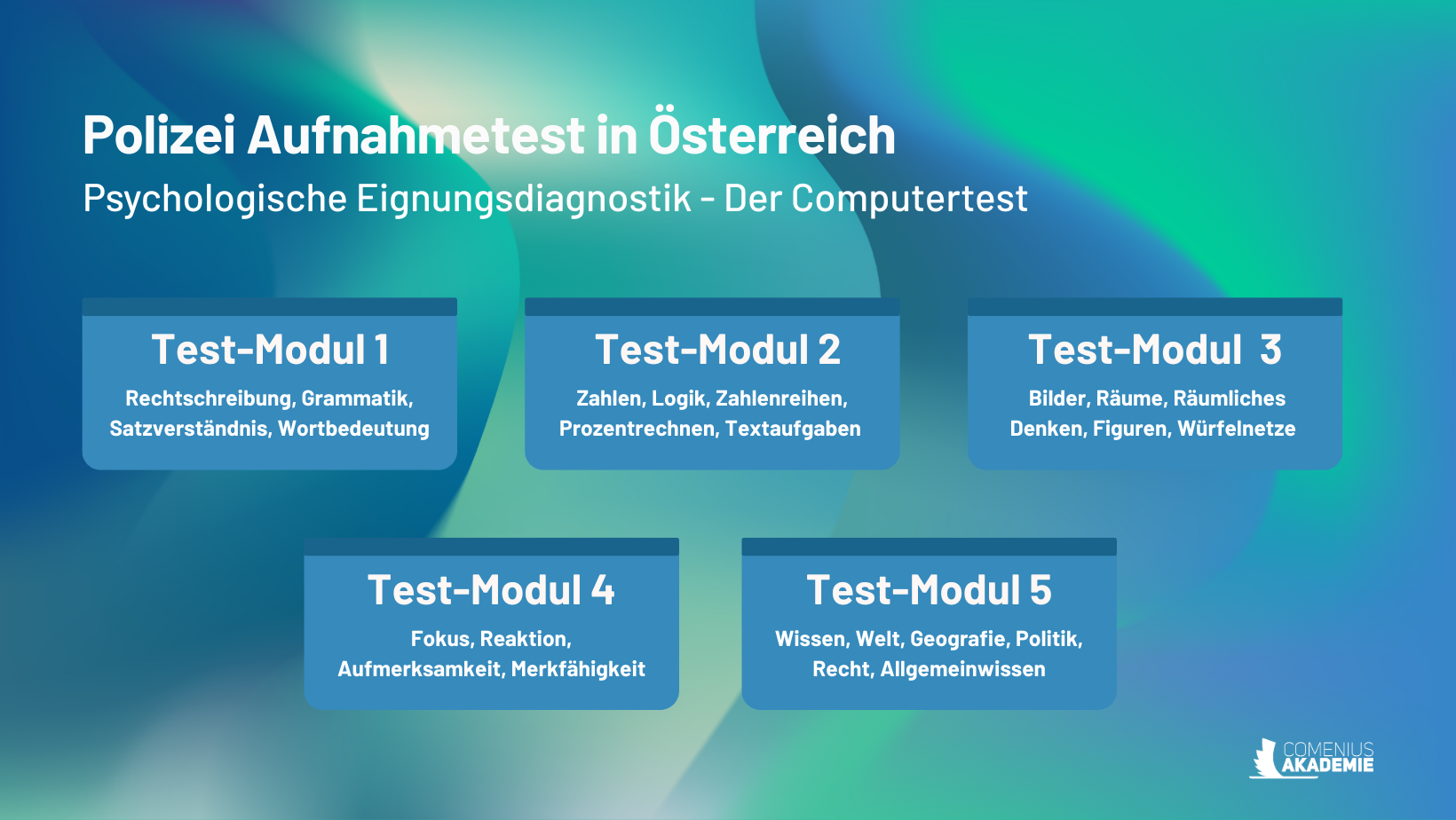 Die psychologische Eignungsdiagnostik ist ein computergestützter Test, mit dem die Polizei Österreich deine kognitiven Fähigkeiten, Konzentration, Sprachbeherrschung und logisches Denken überprüft. Ziel ist es, deine grundsätzliche Eignung für den Polizeiberuf festzustellen, unabhängig von deiner Schulbildung.
